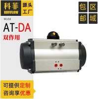 AT SR阀门气动执行器 风阀球阀蝶阀用气缸 执行机构 新一代阀门气动执行器AT/SR/RT Pneumatic Valve ActuatorKFF科菲新型(AT/DA/RT/SR系列)阀门气动执行器是将输入的气压信号转换成90度,再以扭转矩形形式输出的执行机构。该系列气动执行器是一种外型小、性能高的的执行结构,分为双气控型和单气控型两种,与角行程型控制阀组合可用于调节和开关的场合,也可用于其他回转运动的场合。KFF科菲新型(AT/DA/RT系列)双作用阀门气动执行器型号选配说明(供参考):首先确定阀门启、闭时